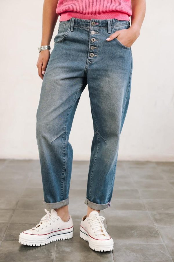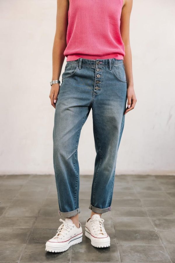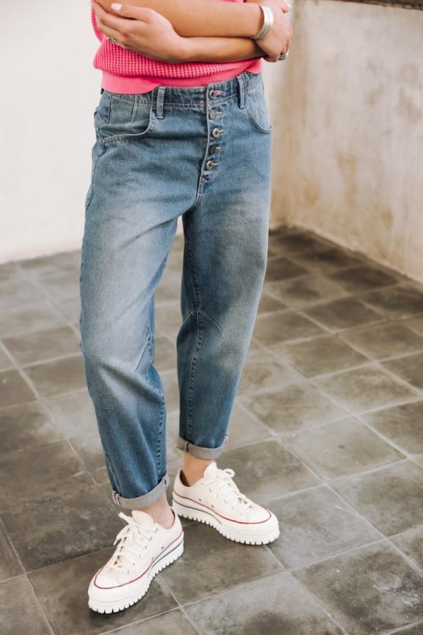 • Taille haute, ouverture avec 5 boutons fantaisies visibles