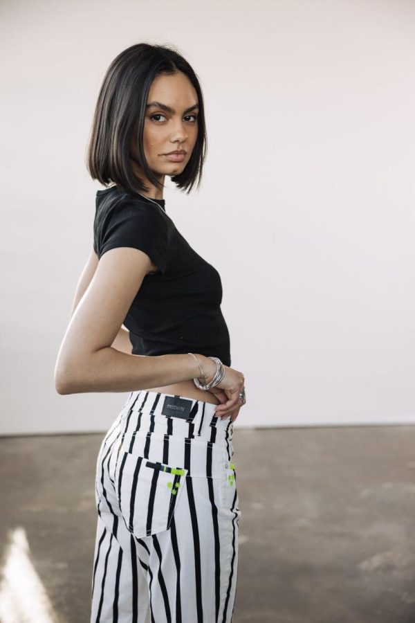 • Matière baby twill légèrement stretch, rayures larges noir et blanc