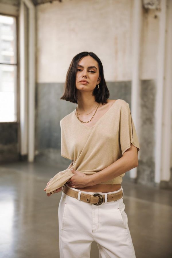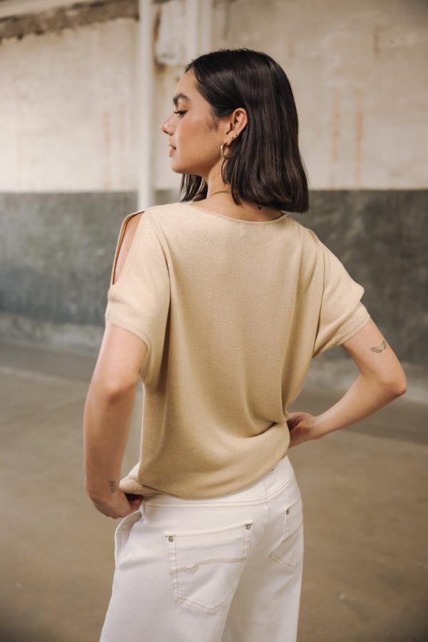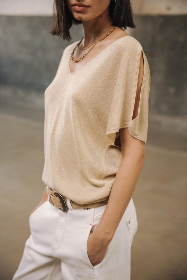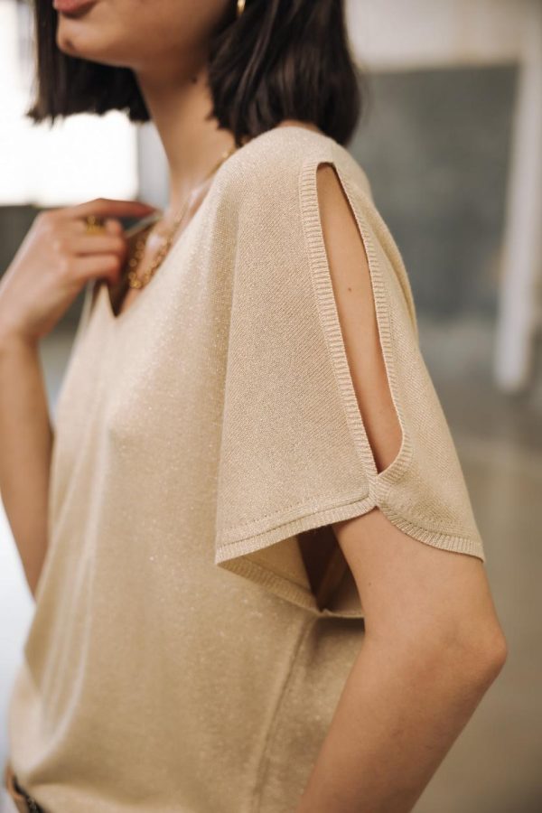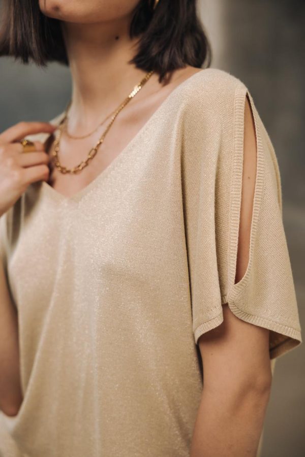 Mailles Femme | Freeman T. Porter Pull épaule Dénudées Paige Lurex, Light Gold