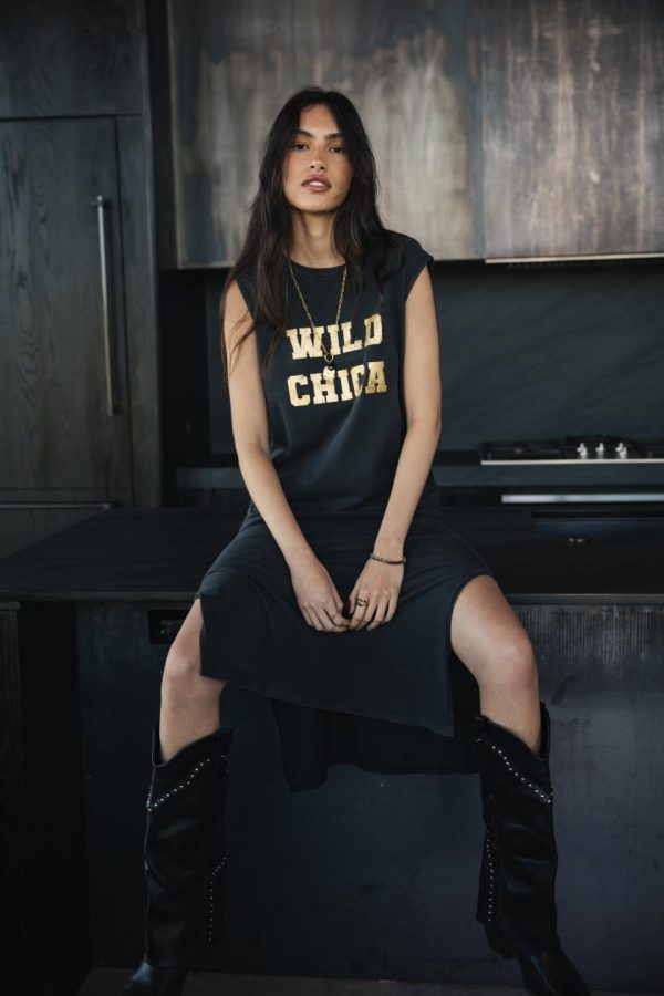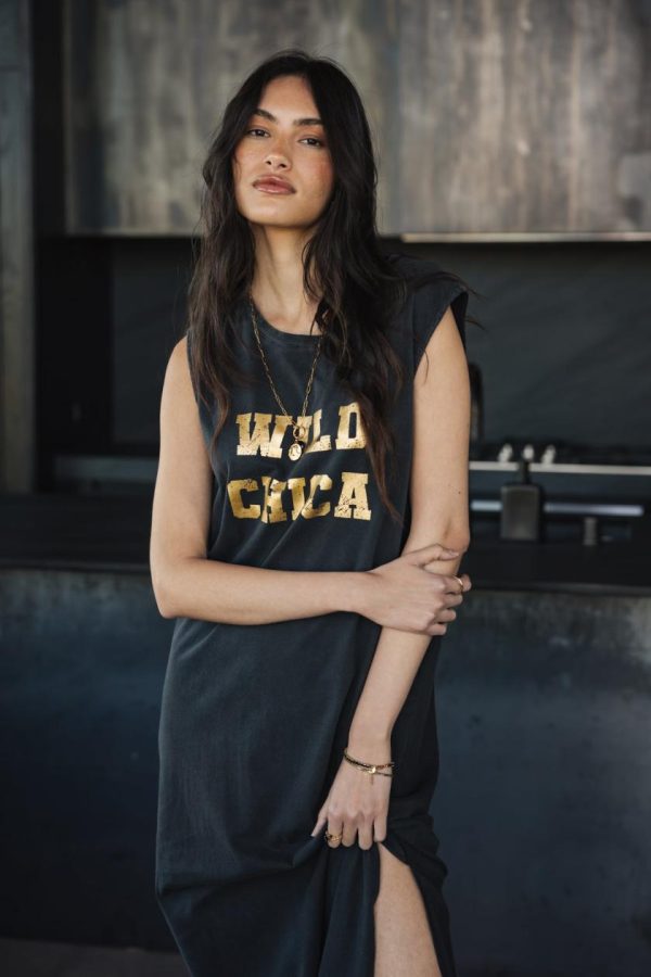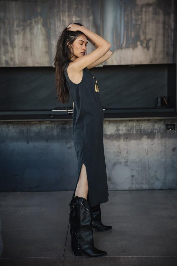 • Robe longue à manches courtes dans un tissu en jersey de poids moyen en coton doux et uni avec un aspect vintage