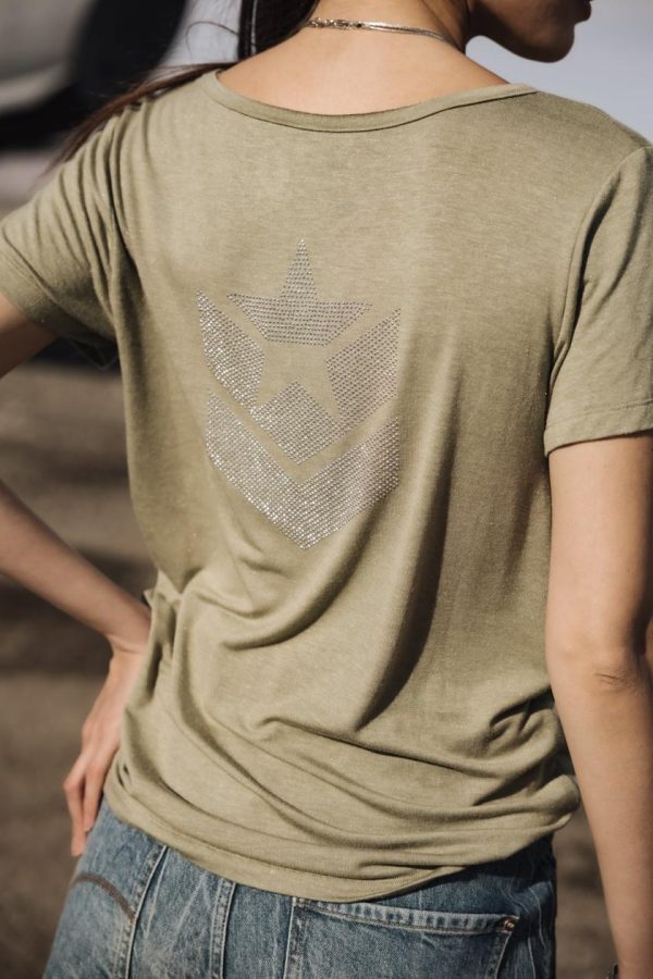 T-Shirts Femme | Freeman T. Porter T-shirt Logo En Strass Tarissa Icon, Light Khaki